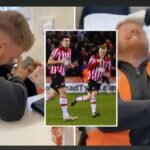 The Sheff U youth product was on the phone to a lottery staff member with his ticket in hand while in his work attire and his priceless reaction was captured on camera by a friend.